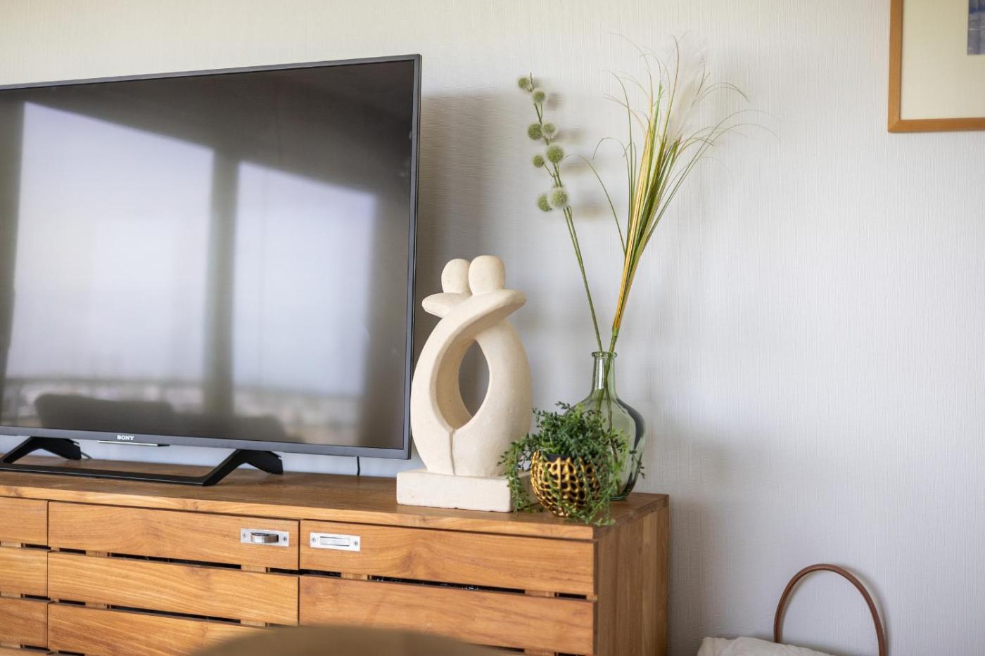 The apartment consists of 2 bedrooms, a living room, a fully equipped kitchen with an oven and a coffee machine, and 2 bathrooms with a bath and a shower. A TV is available.